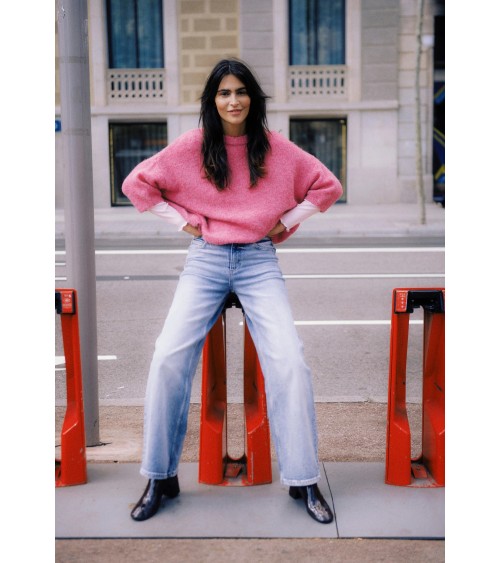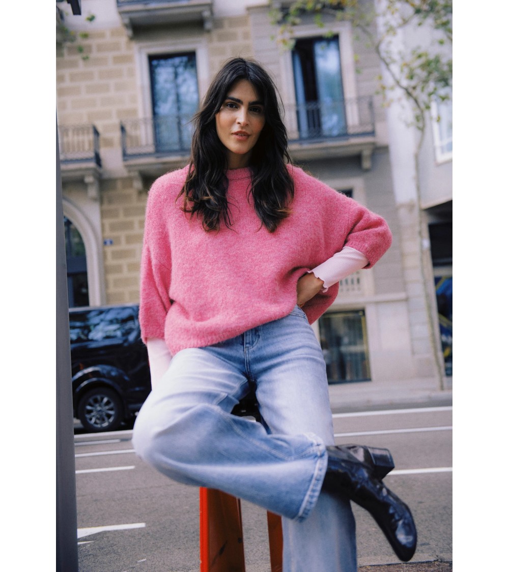 Dieser Strickpullover überzeugt durch eine lockere, kastige Passform, überschnittene Schultern und verkürzte, breite Ärmel. Der Rundhalsausschnitt sowie die weiche Struktur sorgen für einen modernen, minimalistischen Look ganz ohne Muster oder Applikation.